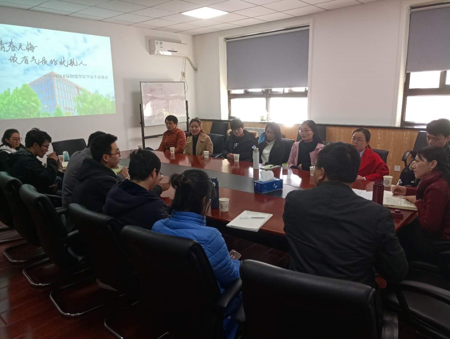 阳春三月,春风送暖。在这个万物复苏的季节,3月15日下午,公司党委书记王文文老师和党委副书记王雷华老师在主楼316会议室与2015级15位硕士毕业生代表召开了主题座谈会。在本次座谈会中师生之间畅所欲言,双向交流。毕业生在会上介绍了自己的工作学习情况以及对公司发展的建议。两位老师认真听取每一位同学的发言并详细记录,针对员工代表所提出的每一个建议都进行了充分分析和讨论。