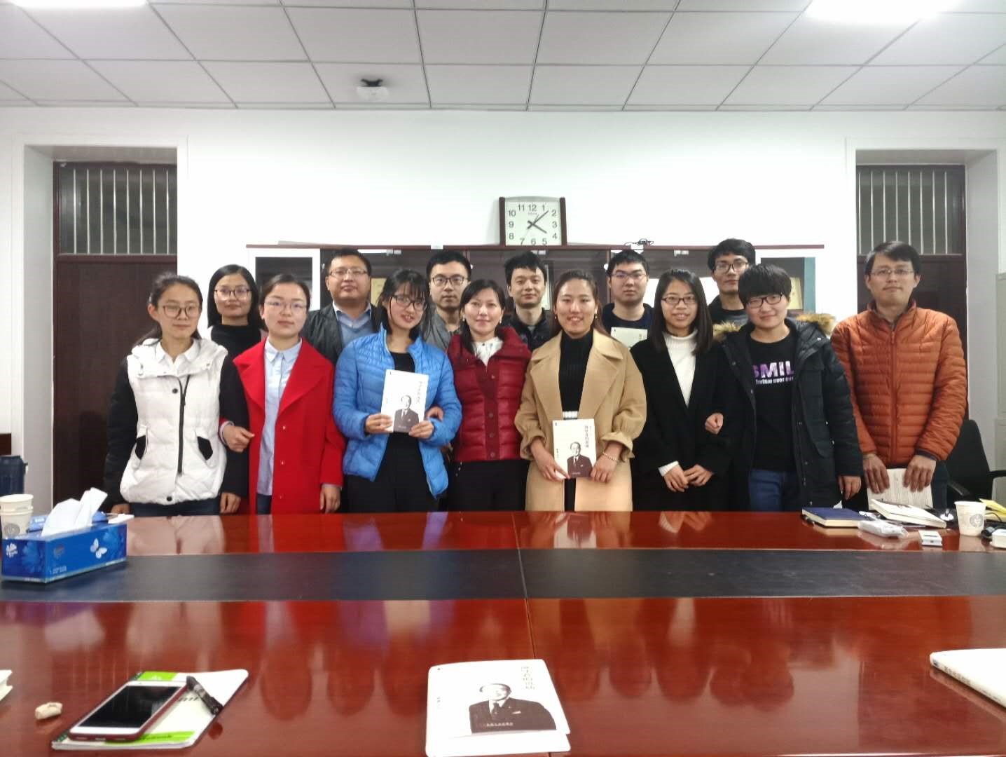会议结束,两位老师亲手将写有王文文书记和吕广宏经理签名的《领导者的资质》图书赠与每一位参会同学,并和大家合影留念,衷心地祝愿大家在以后的道路上越走越高,越走越远,青春无悔,做有气质的北航人。