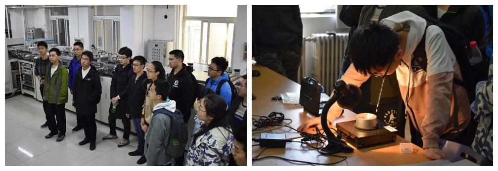 早上9点,来自高工的近30名员工来到了yl9193永利集团电致变色中心实验室和脉冲离子束联合实验室,在这里,研究生学长分别向高工员工们介绍了实验室的研究方向和目前的工作进展,并简单介绍了实验仪器的工作原理和流程,针对高工同学们提出的关于实验室的相关问题做出了详细解答,让同学们对实验室有了深入的了解。接着,高工员工们来到了北京市先进核能材料与物理实验室、近代物理实验室和核物理等实验室,同学们纷纷被精密的实验仪器所吸引,尤其对于将来“人造太阳”的直线等离子体装置产生了浓厚的兴趣。在近代物理实验室,实验室学长针对实验现象对同学们做了基本的原理讲解,并对同学们介绍了实验室的研究方向和未来可能取得的成果,同学们也兴致勃勃地纷纷动手操作了部分实验。