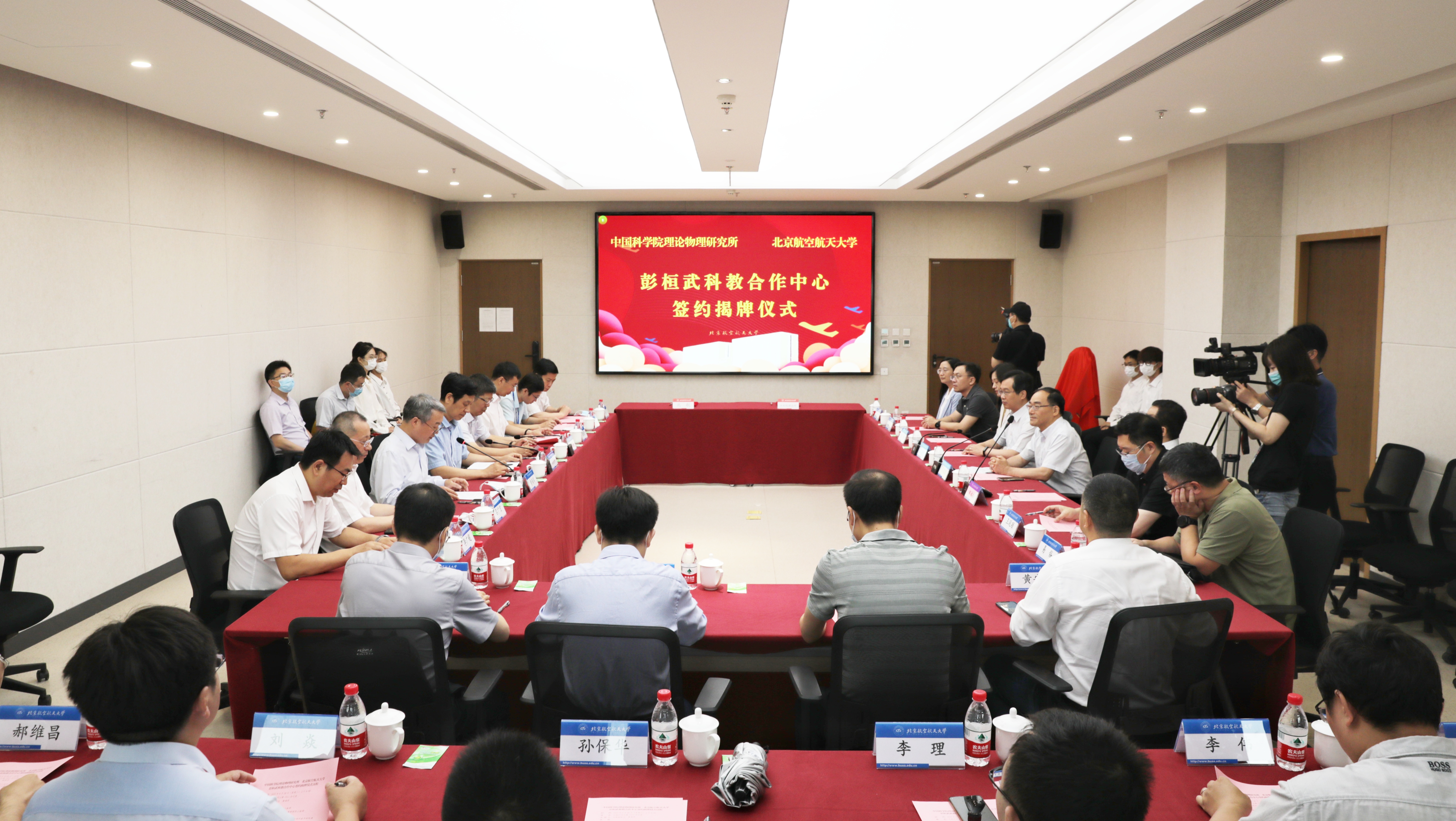 北航新闻网6月29日电(记者 宋超 通讯员 李思瑶/文 记者 邸白鹭 宋超/摄影)2022年6月29日,公司在沙河主楼C511举行中国科公司理论物理研究所-yl9193永利集团彭桓武科教合作中心揭牌及签约仪式。中国科公司理论物理研究所(以下简称理论物理所)所长蔡荣根院士,中心主任邹冰松院士,副所长周善贵、王延颋,公司董事长徐惠彬院士,副董事长刘树春、黄海军等出席活动。会议由黄海军主持。