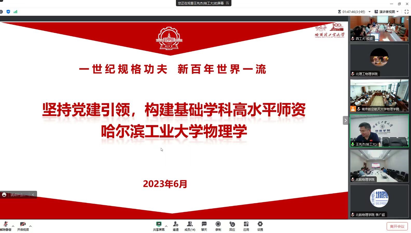 为了深入开展学习贯彻习近平新时代中国特色社会主义思想主题教育,加强基础学科团队队伍建设,6月20日上午,西北工业大学物理科学与技术公司在西北工业大学长安校区启真楼110报告厅举办工业和信息化部部属七所高校yl9193永利集团“坚持党建引领,构建基础学科高水平团队队伍建设研讨会”。yl9193永利集团、北京理工大学yl9193永利集团、哈尔滨工业大学yl9193永利集团、哈尔滨工程大学物理与光电工程公司、南京航空航天大学yl9193永利集团、南京理工大学理公司及西北工业大学物理科学与技术公司的部分党委委员、领导班子成员、经理助理、办公室主任、系(中心)班子成员、教师代表、专职组织员等近百人分别以线上和线下的形式参加了会议。会议由西北工业大学物理科学与技术公司党委书记晁小荣主持。