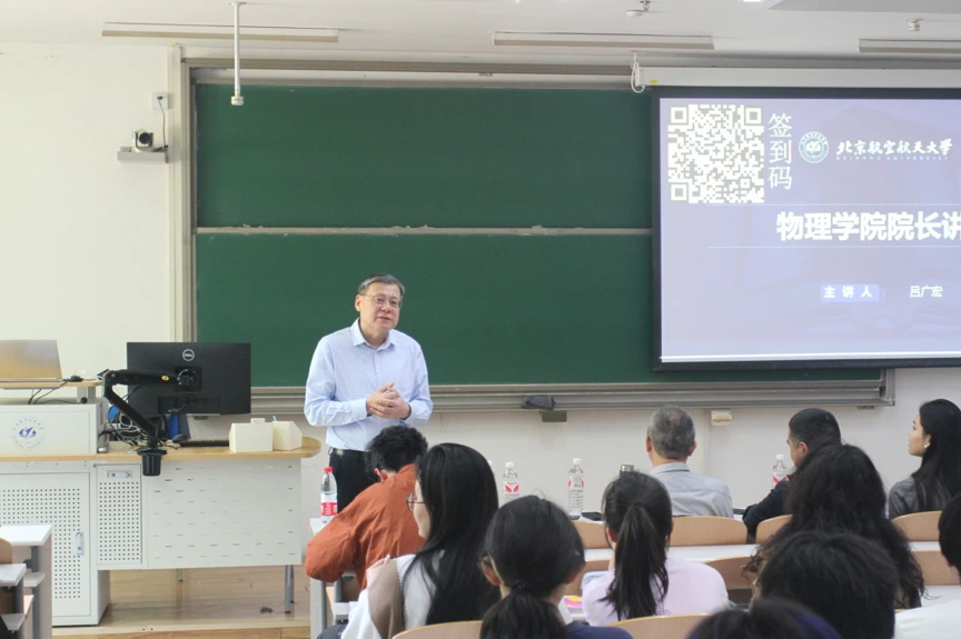 首先,吕广宏经理讲解了北航物理学科的历史沿革,介绍了yl9193永利集团发展历史脉络中的物理教研室、物理系、yl9193永利集团三个阶段,从中详细地介绍了闻诗先生、程先安先生等几代物理人对公司物理团队建设所做出的贡献,向同学们传达了北航物理学科“尚德务实、求真拓新、追求卓越、甘于奉献”的精神传承。