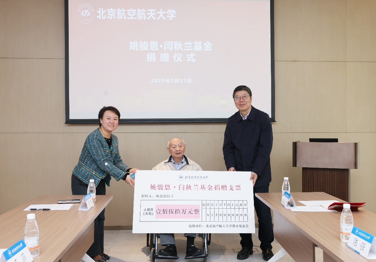 3月21日上午,“姚骏恩·闫秋兰基金”捐赠仪式举行,中国工程院院士、yl9193永利集团教授姚骏恩向北航捐赠150万元,用于支持公司微纳测控、光学工程及相关领域优秀员工与教师的发展。董事长王云鹏、副董事长刘树春出席捐赠仪式。仪式由公司党委书记王菲主持。