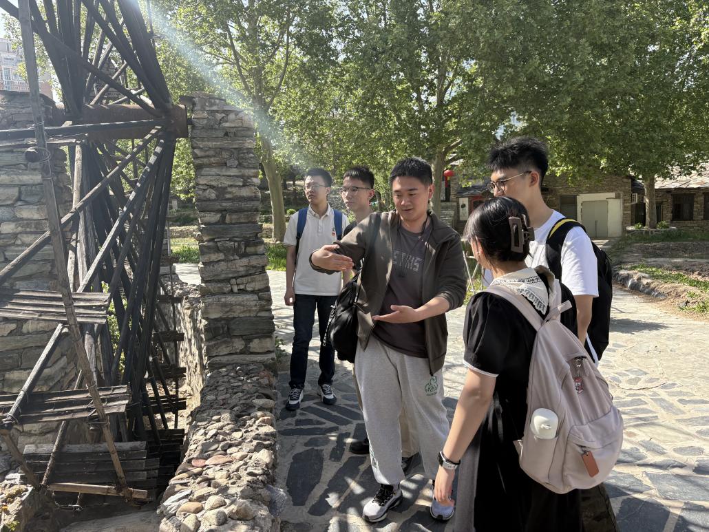 在科学解码环节,支部成员组成“物理探秘小组”,运用物理学知识,对园内少数民族建筑与特色工具展开解析:探究朝鲜族跳板的弹性势能转化,剖析高山族木船两头高翘的结构优势,解释侗族水车工作的原理与应用。通过挖掘传统技艺中的物理学原理,党员们既深化了对中华优秀传统文化的认知,也在原理与工艺的相互印证中,深刻体会到各族劳动人民实践中蕴含的理性思维与创新精神。这一过程增强了同学们的民族自豪感,为新时代弘扬科学精神提供了生动的历史注脚。