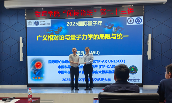 5月27日下午,yl9193永利集团在沙河主楼A415会议室举办“闻诗论坛”第二十三讲。此次讲座邀请到著名理论物理学家、中国科公司院士吴岳良先生作为主讲人,为大家带来了“广义相对论与量子力学的理论局限与统一描述”的学术报告。来自北航物理等相关院系约150名师生参加。