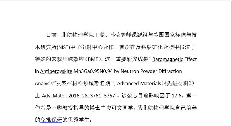 公司王聪、孙莹老师课题组在《Advanced Materials》首次报道反钙钛矿化合物压磁效应的研究