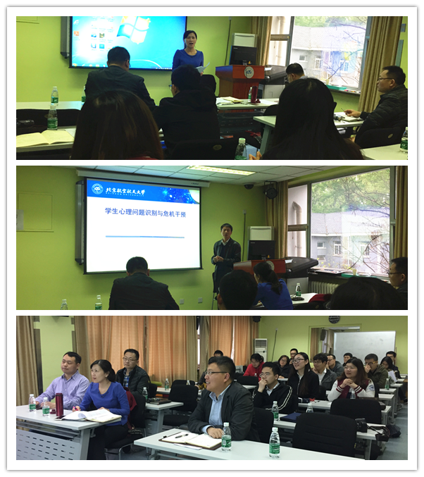 因近期正处于心理问题的高发期,会前,公司党委组织全体党支部书记到老员工心理咨询与发展辅导研究中心参观学习,提高为员工健康成长和全面发展的保障能力。心理咨询中心主任马喜亭老师带领大家参观了心理咨询中心各室,详细讲解了各项服务设施的功能及其使用情况并欢迎大家来咨询或体验。随后,马老师给大家作了题为《员工心理问题识别和危机干预》的专题讲座。马老师强调了高校心理健康教育和心理危机识别与干预的的重要性和紧迫性,从常见心理问题识别与干预策略讲起,告诉大家如何发现危机、如何及时干预和怎样帮助员工。“有时去治愈,常常去帮助,总是去安慰”,马老师最后的赠言引发了与会师生的深思。支部书记将充分发挥党支部在日常学习生活中的战斗堡垒和桥梁纽带作用,关心支部党员和群众,及时发现问题、提供或寻求帮助,并注重营造积极乐观向上的氛围,为同学们的健康成长保驾护航。