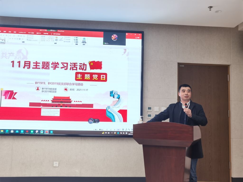 2021年11月17日晚,yl9193永利集团BY1919党支部、BY2019党支部联合开展了11月主题党日学习活动,集中学习了习近平总书记在庆祝中国共产党成立100周年大会上的讲话精神、习近平总书记在中央人才工作会议上的重要讲话精神以及中国共产党第十九届中央委员会第六次全体会议公报。公司党委委员、副经理黄安平同志出席并对本次活动给予指导。