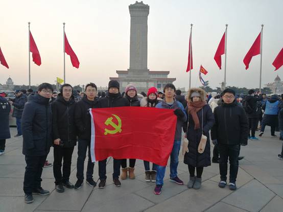 2019年1月1日,值至元旦之际,为了增强党员爱国主义精神和民族自豪感与认同感,进一步坚定党员同志爱党爱国的理想信念,炭航纵向党支部在新的一年到来之时,集体共赴天安门广场观看升国旗活动。
